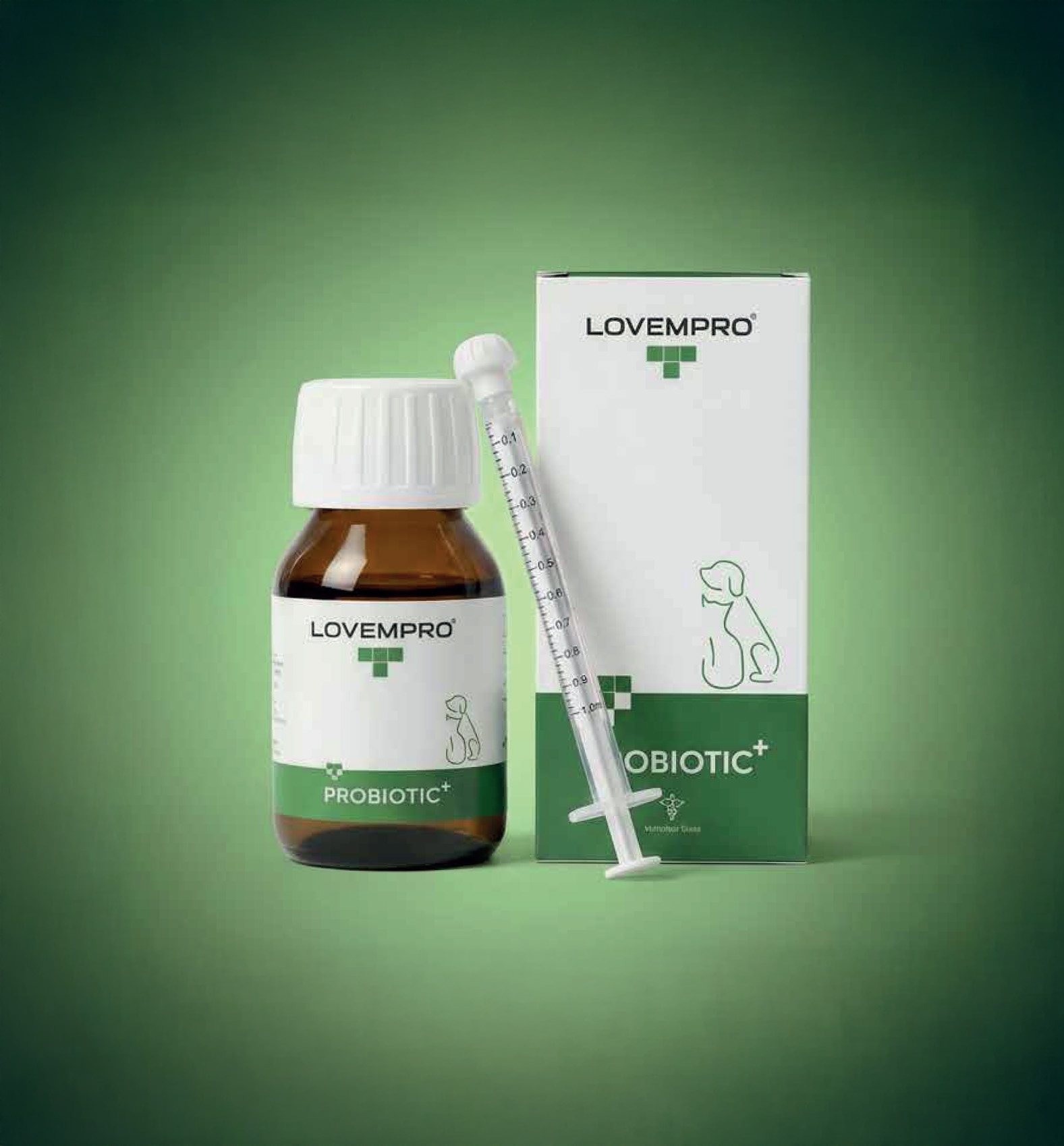 Lovempro® Probiotic+, kedi ve köpeklerde sindirim sistemi sağlığını desteklemek, bağırsak florasını dengelemek ve bağışıklığı güçlendirmek amacıyla geliştirilmiş özel bir veteriner takviyesidir.